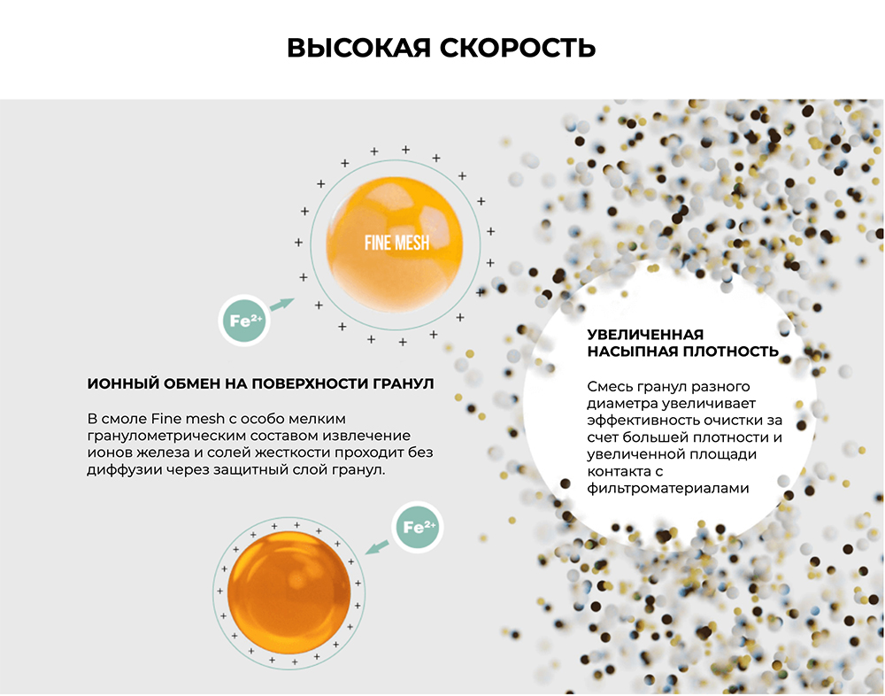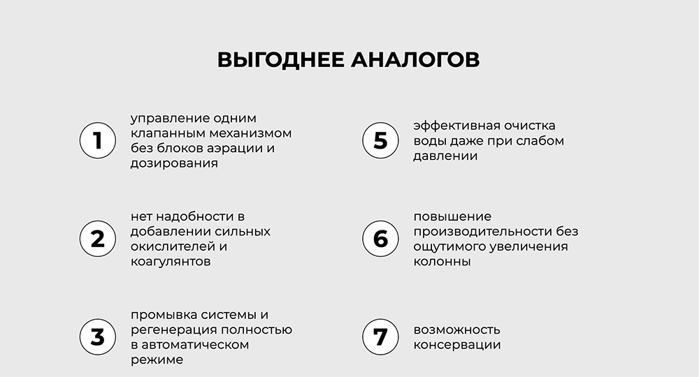 Для восстановления фильтрующих свойств загрузки не требуется использования специальных реагентов – регенерация выполняется раствором таблетированной соли.