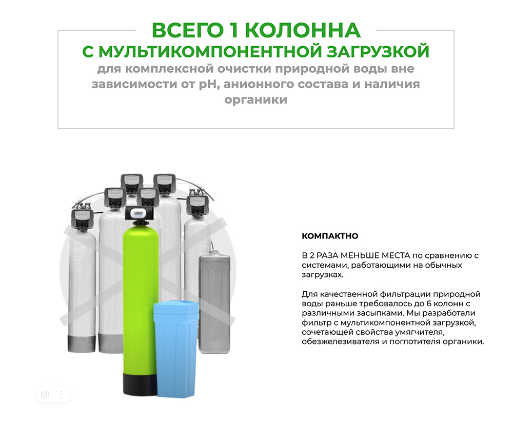 - Удаление нескольких групп загрязнений одной фильтрующей колонной.